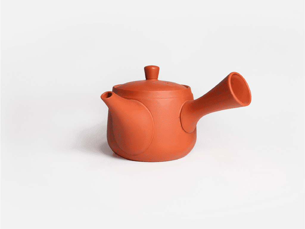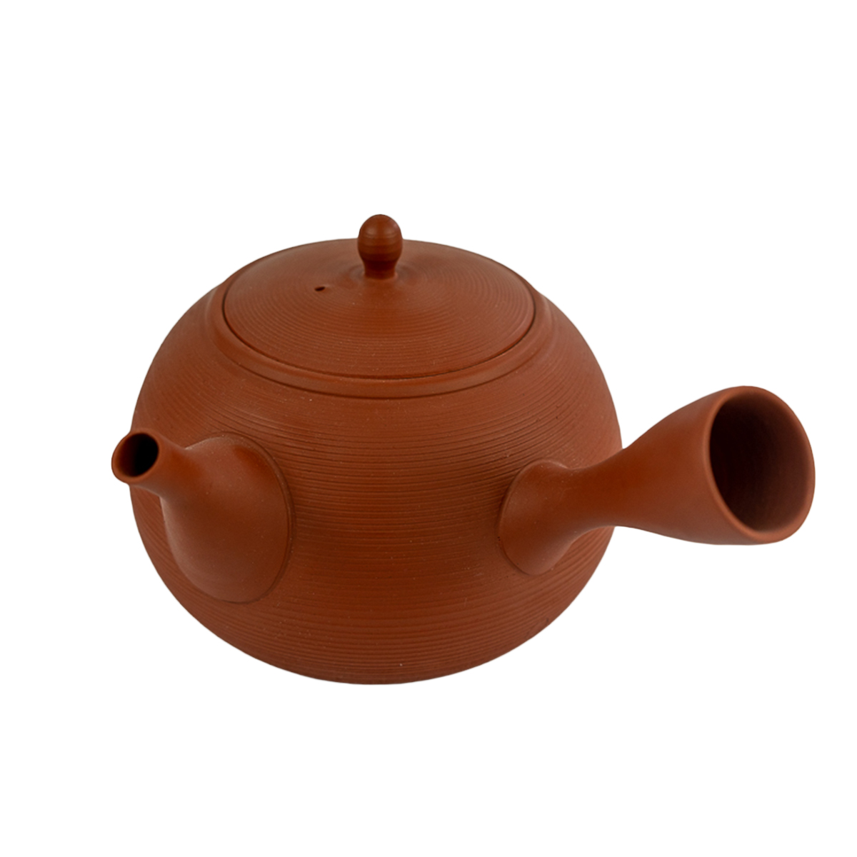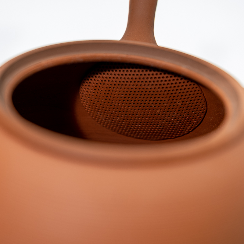 Beautiful hand-made red clay kyusu with ceremesh strainer for brewing high qulity kabusech and sencha for a large group of people. Rokurome techniques is used to created fine lines on the surface of the kyusu. This is a highly advanced technique as the lines need to be formed in a single stroke.