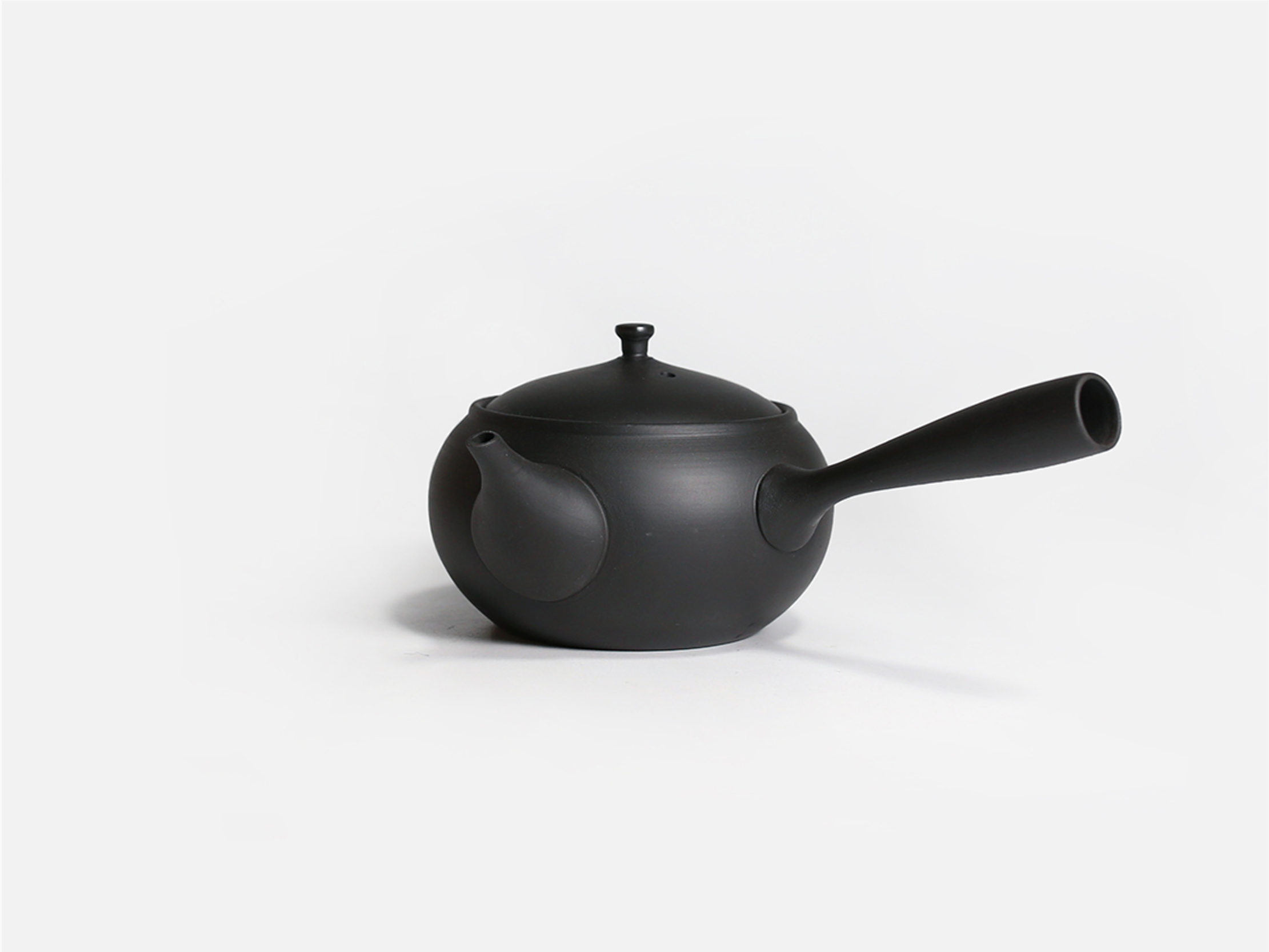 Crafted from natural Tokoname clay, this kyusu enhances the sweetness and smoothness of green tea through its natural mineral interaction. The matte black surface absorbs light and invites contemplation — a perfect embodiment of wabi-sabi simplicity and everyday elegance.
