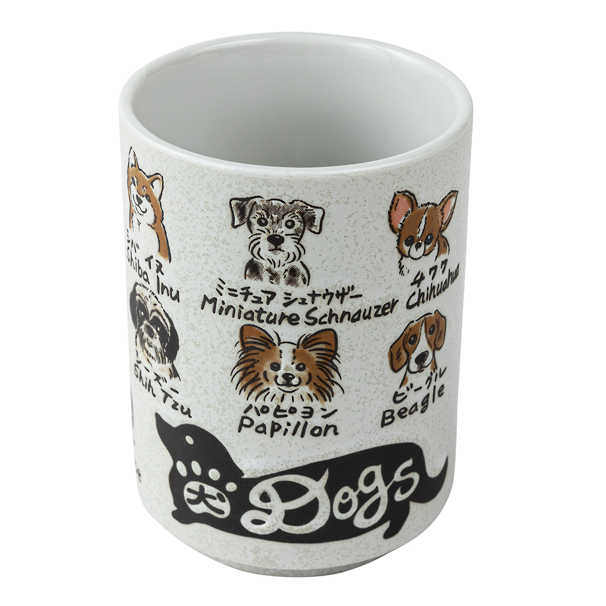 Bring joy to your tea moments with this charming Japanese ceramic cup featuring hand-drawn illustrations of beloved dog breeds. From Shiba Inu to Papillon, each pup is depicted in a playful, warm style with both English and Japanese names, making it the perfect gift for dog lovers and collectors of Japanese ceramics.