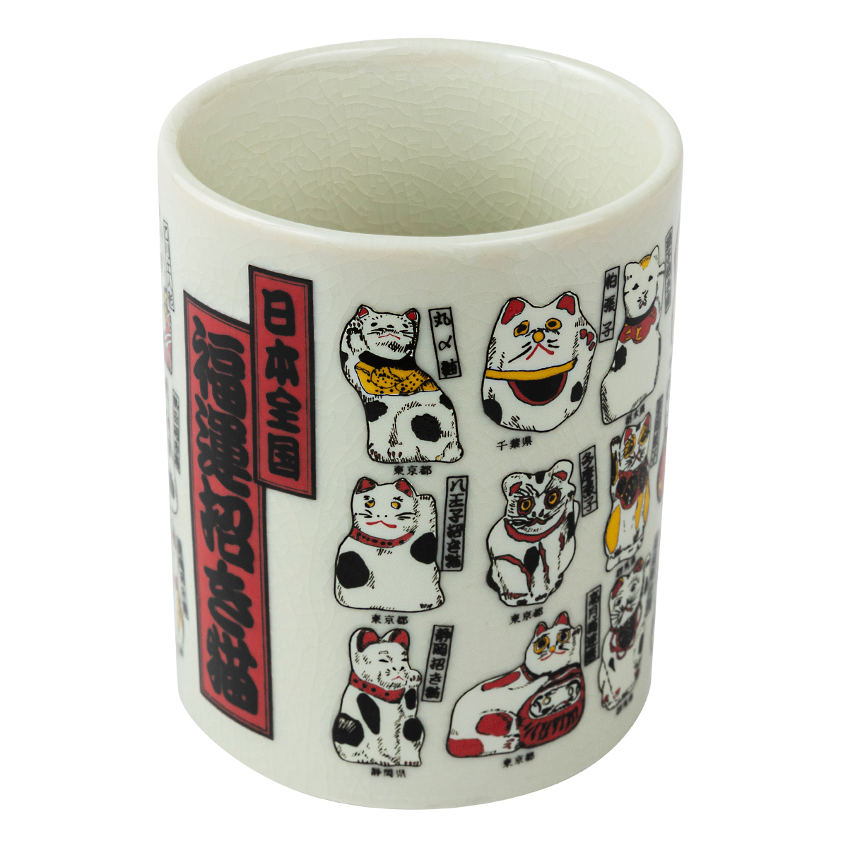 Celebrate your love for cats and welcome a touch of good fortune with this charming Maneki-Neko (Beckoning Cat) ceramic tea cup. Adorned with traditional lucky cat illustrations from regions across Japan, this cup carries the symbolic meaning of prosperity, protection, and happiness — making every sip feel special.